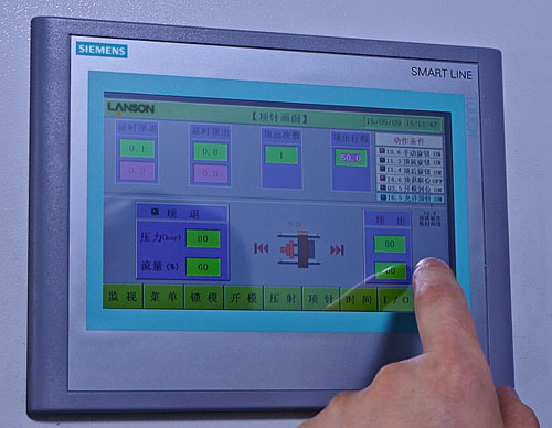 德國西門子控製係統,具備生產管理,故障診斷及多組模具參數存貯等功能。