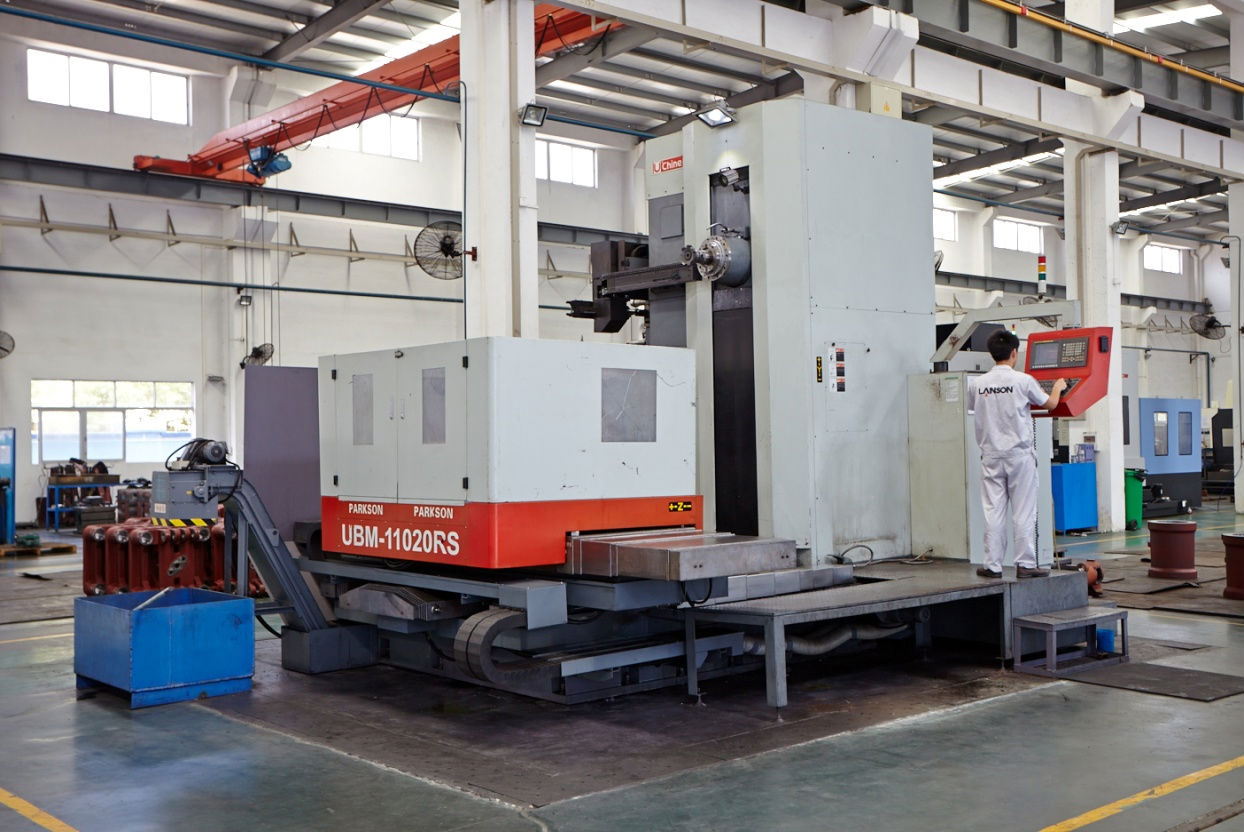 引用國際化管理模式的生產加工車間、先進的大型加工設備(落地鏜床、龍門銑、臥式加工中心、五麵體加工中心、數控車床等)、精密的檢測設備(三坐標測量儀、瑞士Sensormate 鎖模力測量係統、絕緣電阻測量儀、接地電阻測量儀、熱電偶校準儀、紅外線測溫儀、壓力表校正儀、測振儀、塗層測厚儀、裏氏硬度計、洛氏硬度計、數字電能參數測量儀等)及高規模的大型零配件倉庫,所有零配件均經過條形碼標號,通過掃碼進行入庫、出庫,使得零配件的使用與管理效率大大提高,現年生產能力超過1000台。圖片如下: