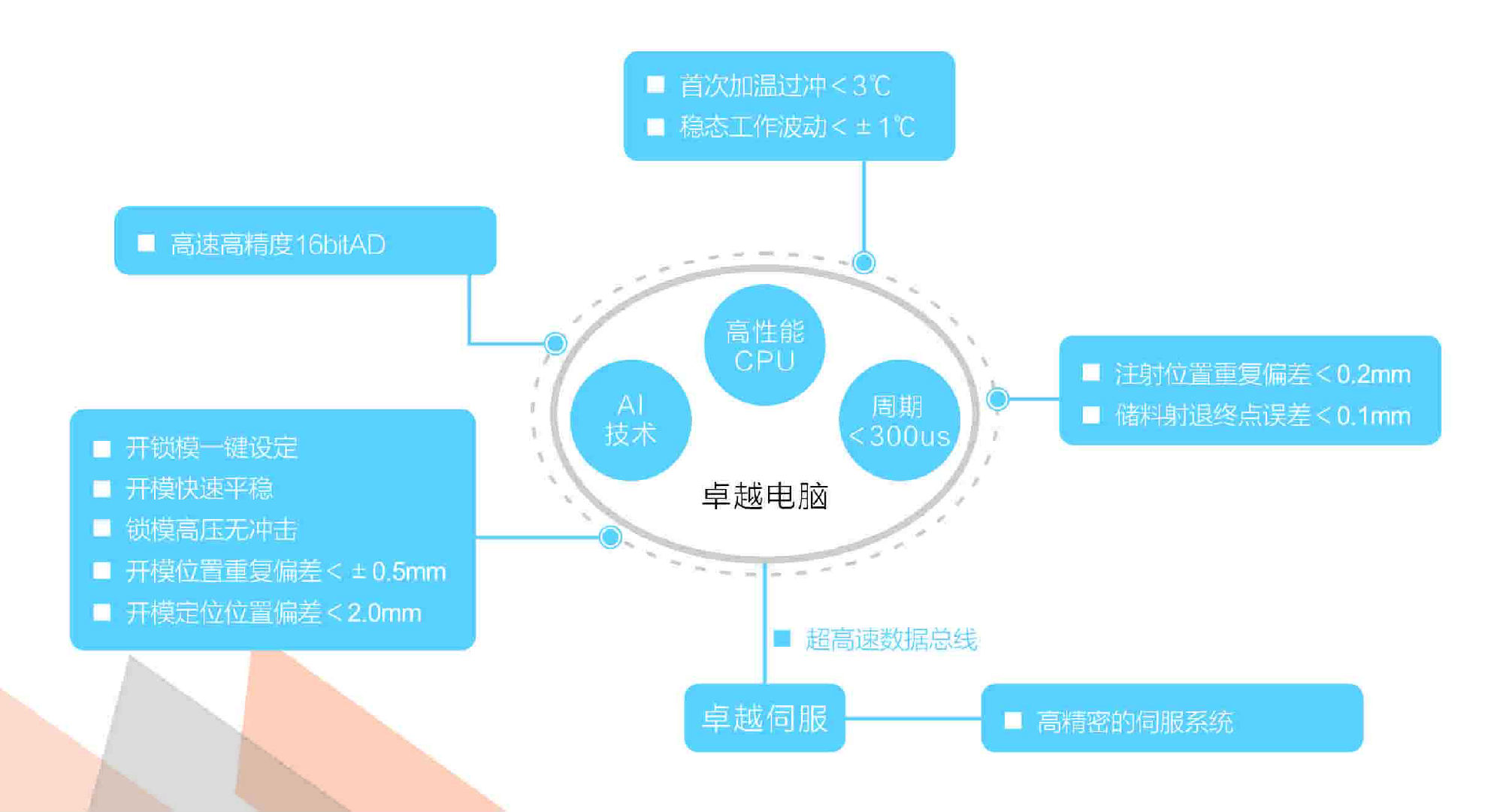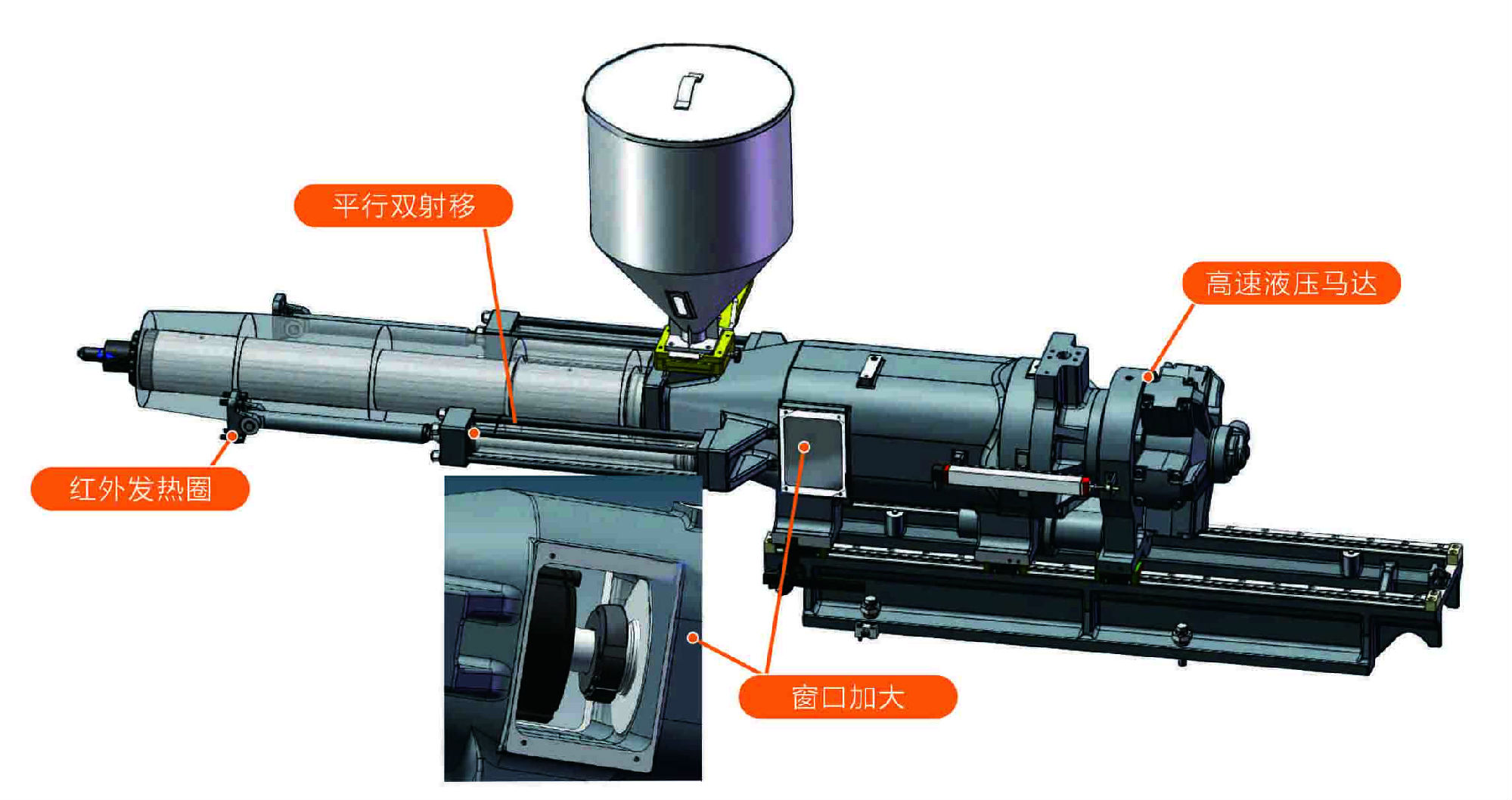 強化鎖模係統,強度剛度合模力提升15%-20%。